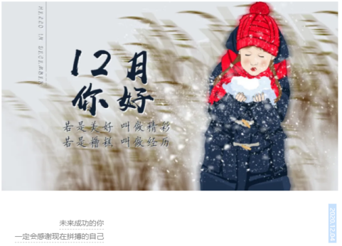 2020庚子年,是一个不平常的年份,无论这一年有多少无力无奈、有多少希望失望,有多少挣扎放弃、有多少跌倒爬起……我们都坚持走到了现在——2020年的最后一个月,这里是所有坚持的最后那咬牙再倾尽全力的一刻!