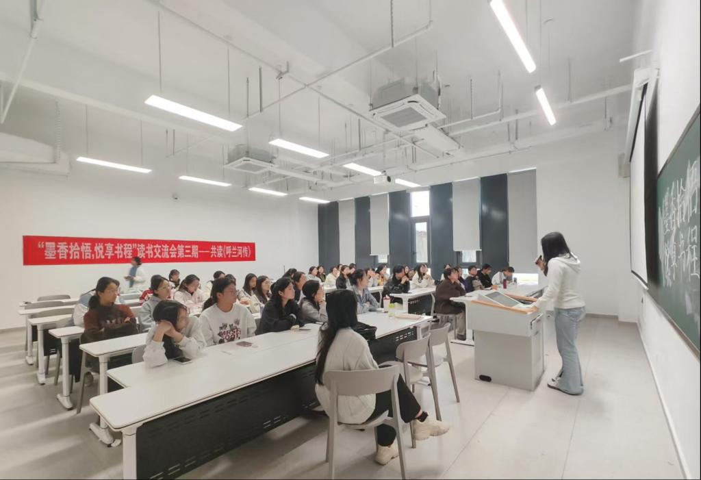 11月12日下午,图书馆在浉河校区图书馆102教室和南湖校区教一楼103教室举办读书分享会,90余名同学共读《呼兰河传》。