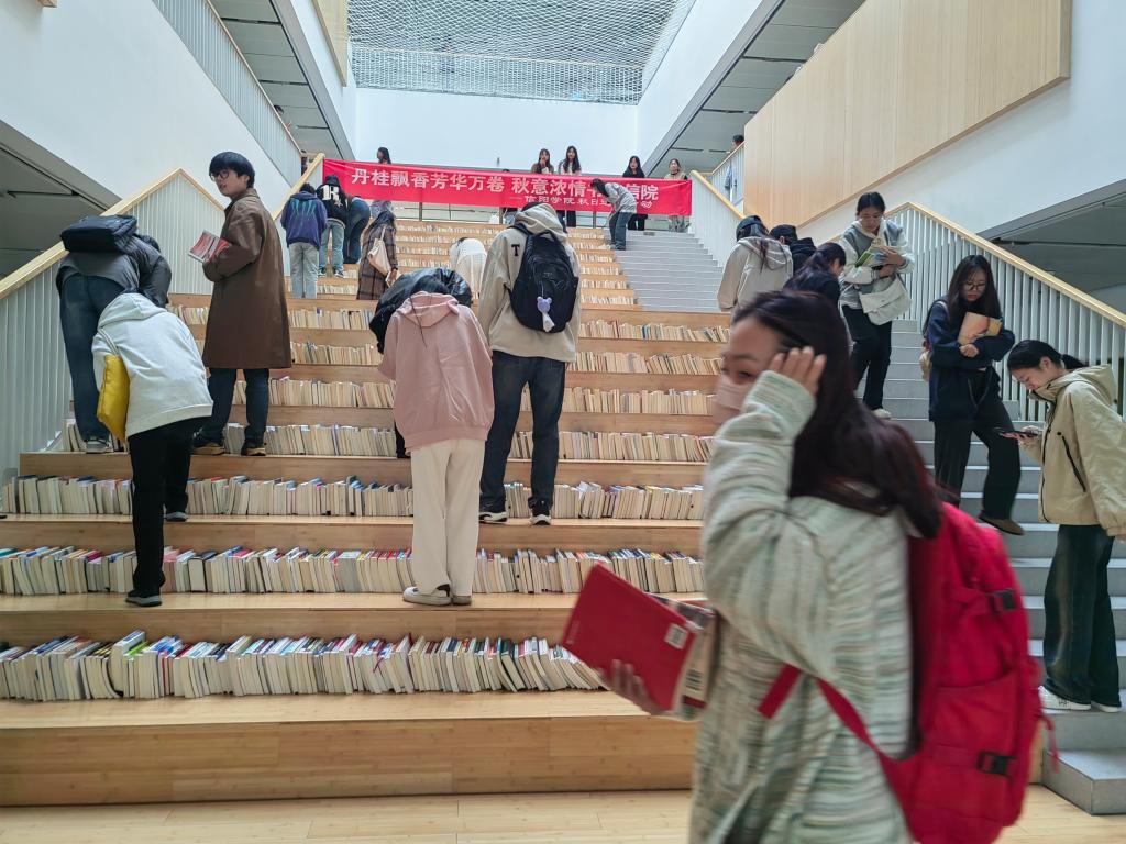 10月22日,图书馆在南湖校区举办送书活动。此次活动现场展出的图书主要包含文学类、历史类、法律类、外语类图书,为文学院、外国语学院和社会科学学院学生提供图书7000余册。