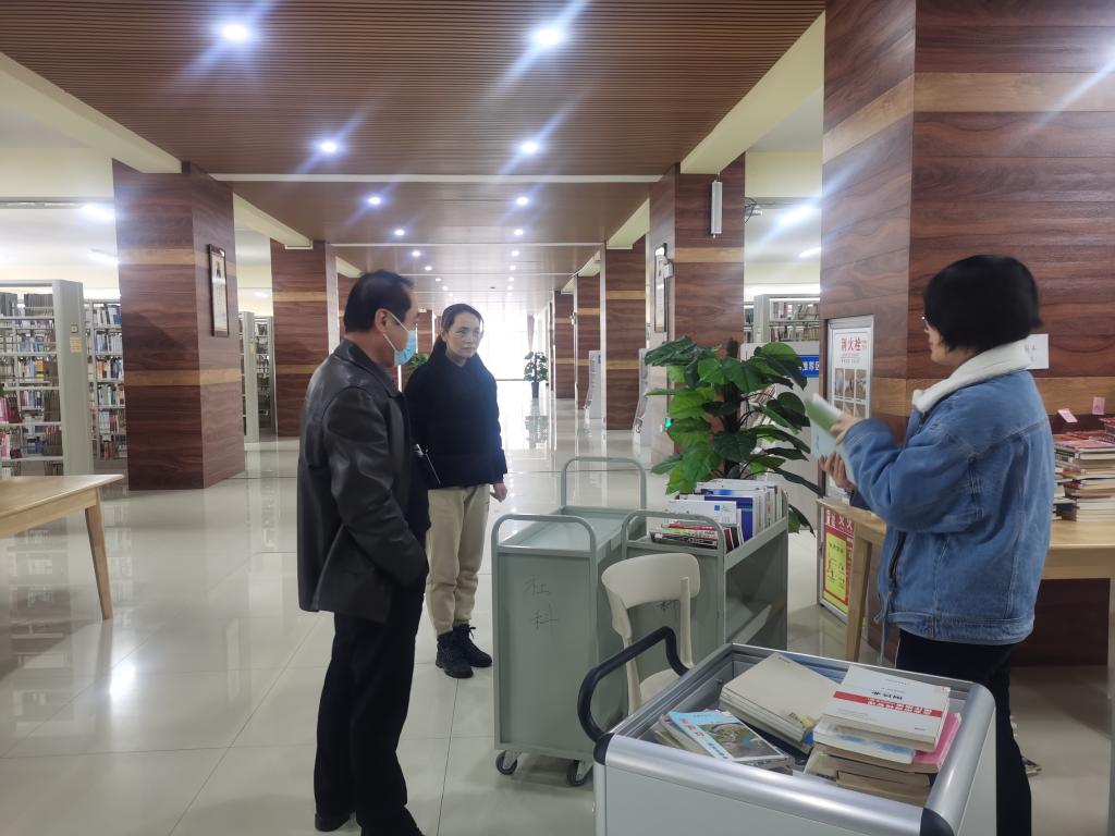 2021年12月16日下午,图书馆馆长李虎和各部室主任对图书馆馆务工作进行了检查。