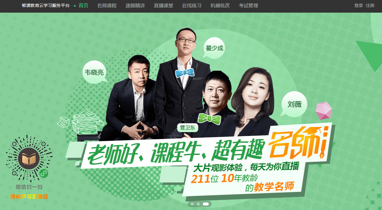 智课教育智课教育云学习服务平台是业内师资顶尖、内容最新、更新及时、外教在线的英语学习服务平台。汇聚了口语名师翟少成、写作名师韦晓亮、雅思名师乐静等一大批顶尖师资的超清课程,拥有国内56位顶尖名师,均为前新东方10年教学经验的品牌教师,帮助超过50万学生赴美留学。平台包含最新最全的大学英语四级\六级\考研\TOFEL\IELTS\GRE\GMAT\等名师课程及外教在线写作、口语批改一对一服务,还可以帮助你润色出国留学文书,让你一站式搞定英语学习,提升成绩。
