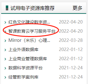 打开图书馆网站-试用电子资源库-智课教育云学习服务平台即可访问。
