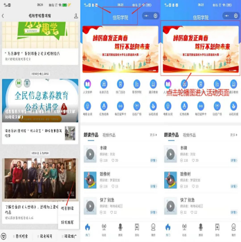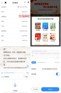 1.参与者扫描下方海报上二维码或关注“信阳学院图书馆”微信公众号,点击下拉菜单【阅读推广】---【优谷朗读】,进入活动页面,报名参与。