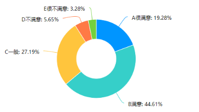 从上图可以看出,读者对工作人员服务态度“满意”、“很满意”的占比分别为44.61%,19.28%,占比还是比较高的。但还有三分之一左右的读者没有感到满意。由此可知,目前图书馆工作人员的服务能力,服务水平等还有很大的提升空间。图书馆应加强对工作人员的要求,搞好工作人员服务的培训,让其在读者面前树立一个良好的形象,为读者提供舒适、专业的服务。