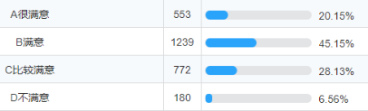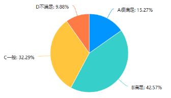 对于阅览环境这项,读者给予了很高的评价,93.46%的读者的评价都在比较满意之上。不满意的比例只占6.56%。由上图可以看出,仍有一部分读者并不满意图书馆的阅览环境,虽然少,但实实在在的存在。在以后的工作中,我馆应加强阅览室自习环境建设,为读者提供一个舒适的阅览环境。