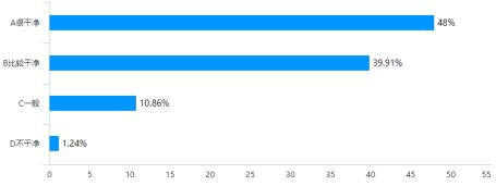 我馆目前有专职人员负责卫生的清理,从整体上看,卫生清理的比较不错。绝大多数读者都给予了“比较干净”、“很干净”的评价。卫生环境是大家共同维护的,图书馆良好的环境状况需要图书馆工作人员与读者的共同维护。