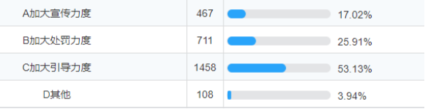 对于图书馆的一些不文明行为,通过调查问卷的反馈可知,绝大多数的读者还是希望图书馆能够通过不断的引导,来纠正这些不文明习惯的发生,从源头上加以遏制、制止,而不仅仅知识单纯依靠处罚来纠正。