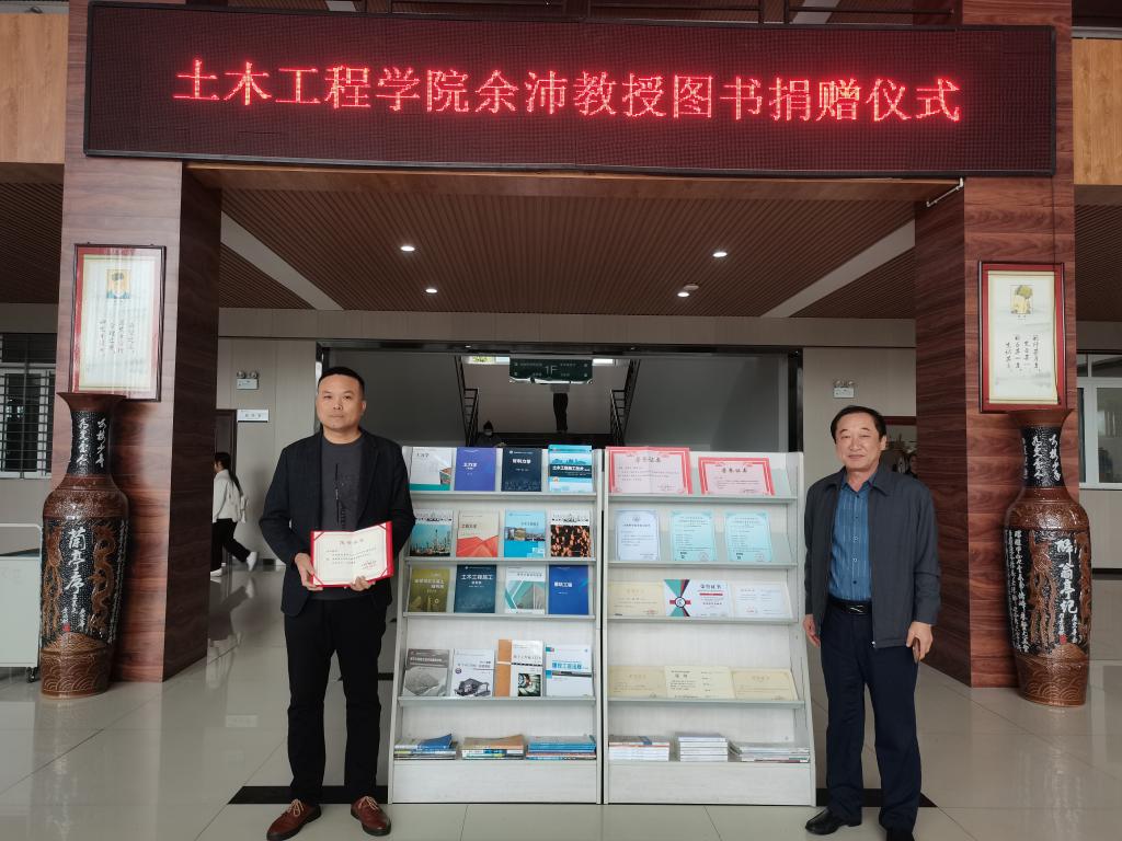 2022年10月9日上午,土木工程学院余沛副教授向图书馆捐赠了53册图书,其中包含《建筑工程资料管理》《工程力学》等23册个人著作,以及期刊论文、发明专利、荣誉证书等30余项学术成果。