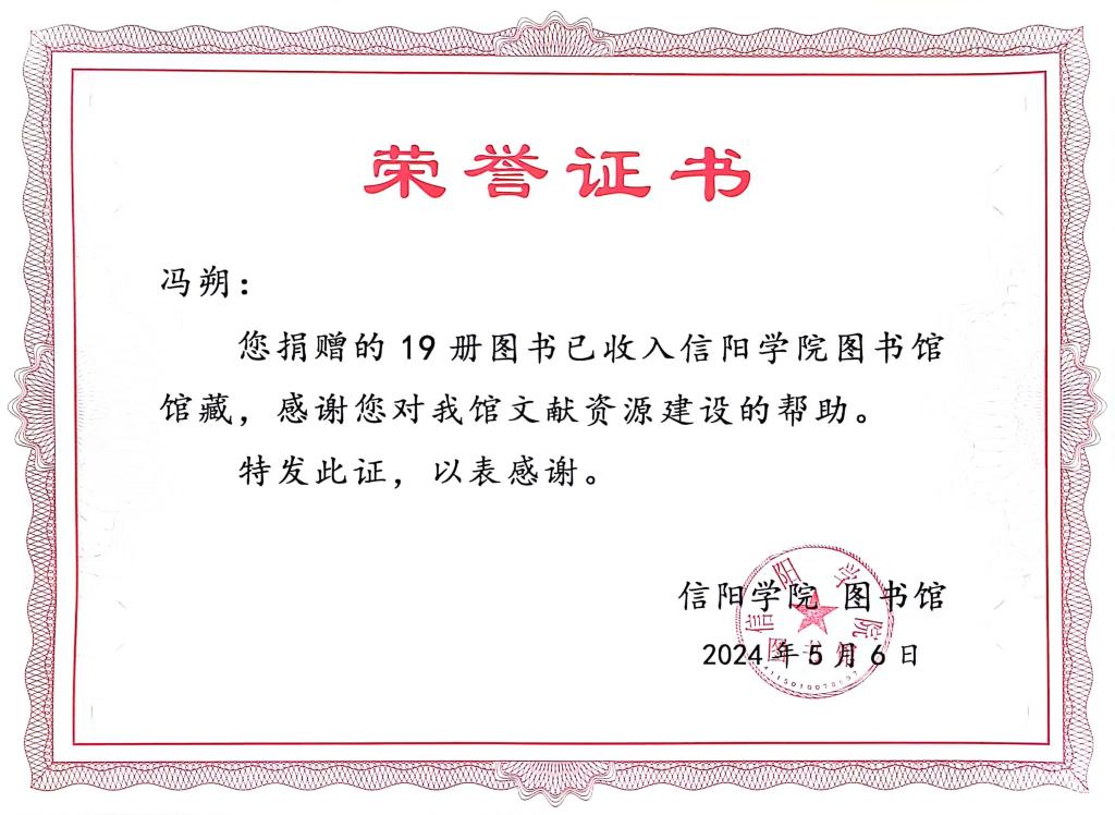 数学与统计学院2023级冯朔同学捐赠图书19册