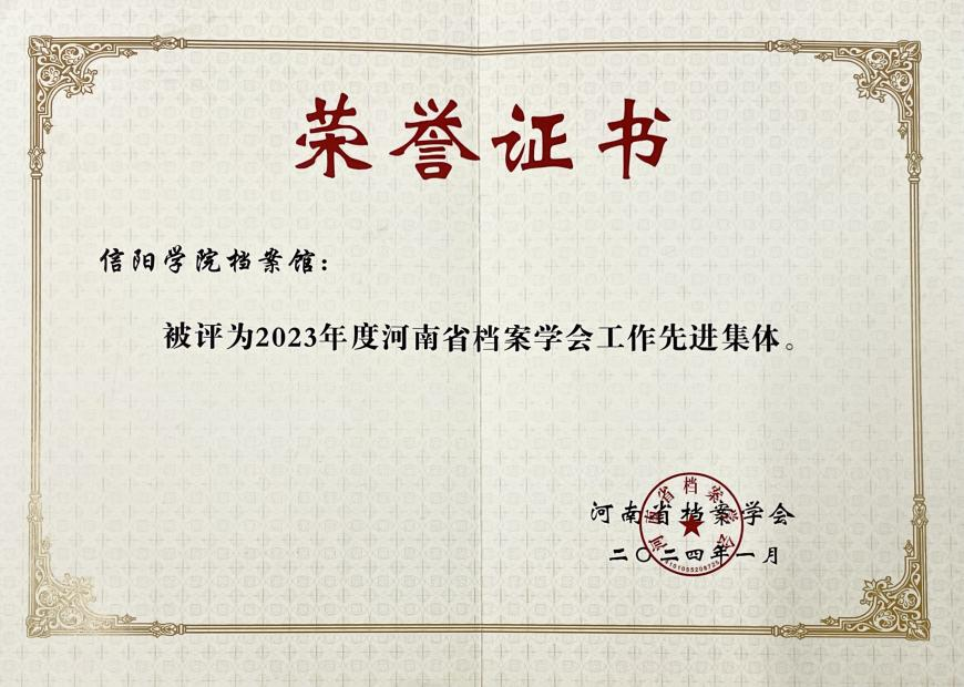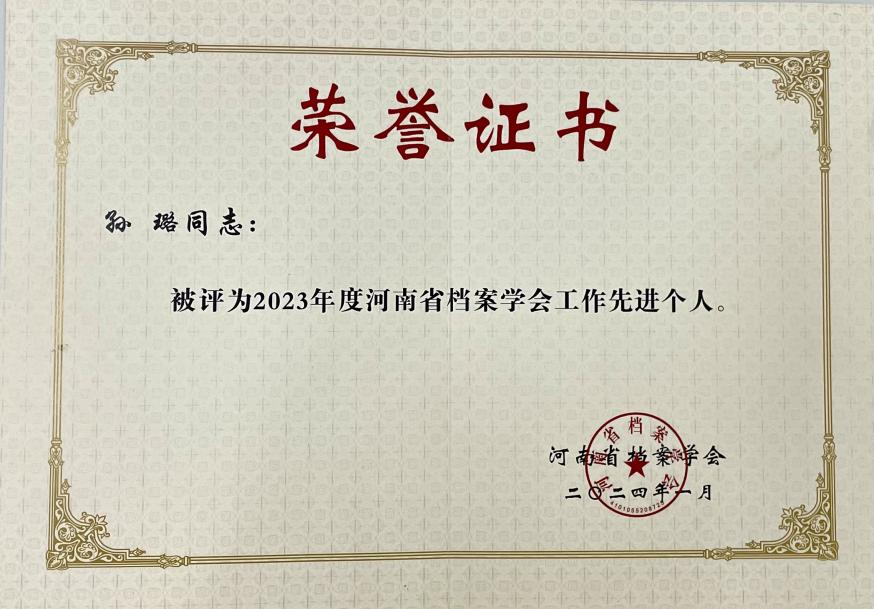近日,河南省档案学会发布了《关于表彰2023年度河南省档案学会工作先进集体和先进个人的决定》,我校档案馆获评2023年度河南省档案学会工作先进集体,孙璐老师获评河南省档案学会工作先进个人。